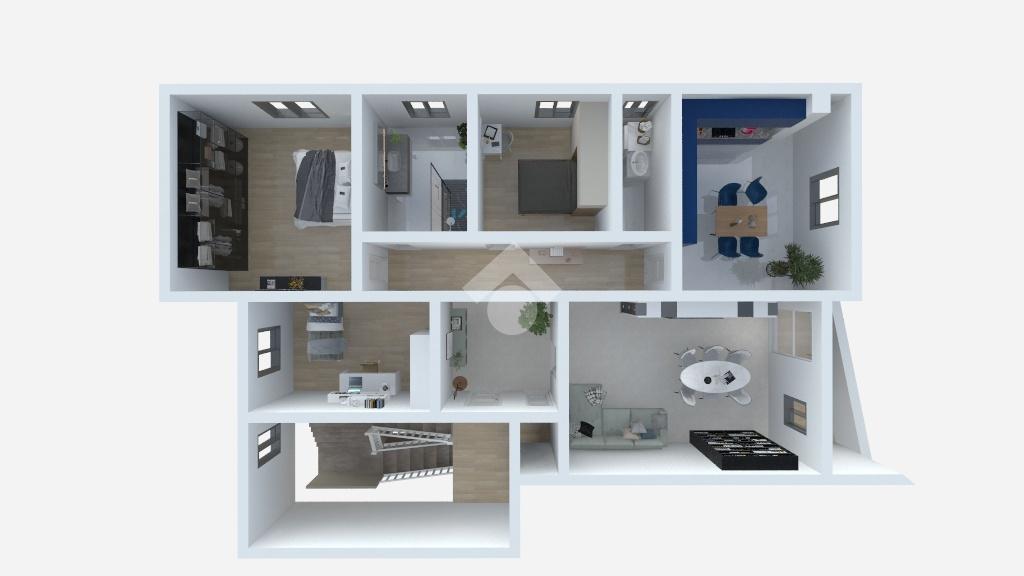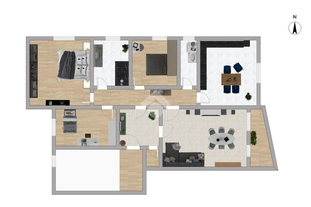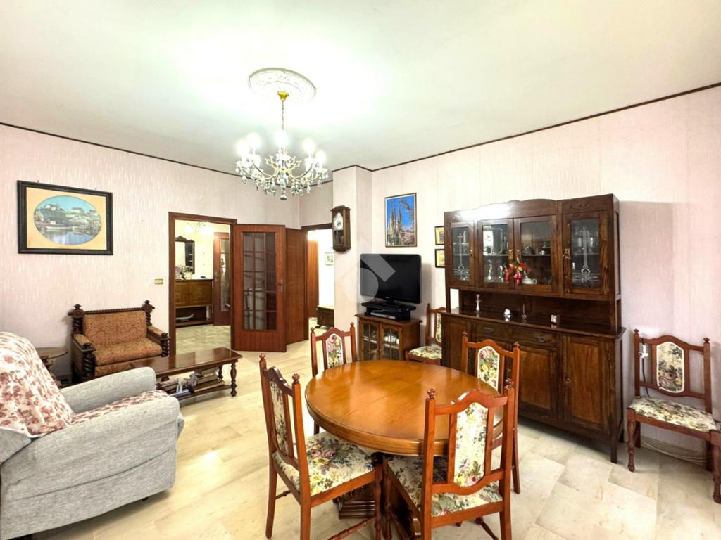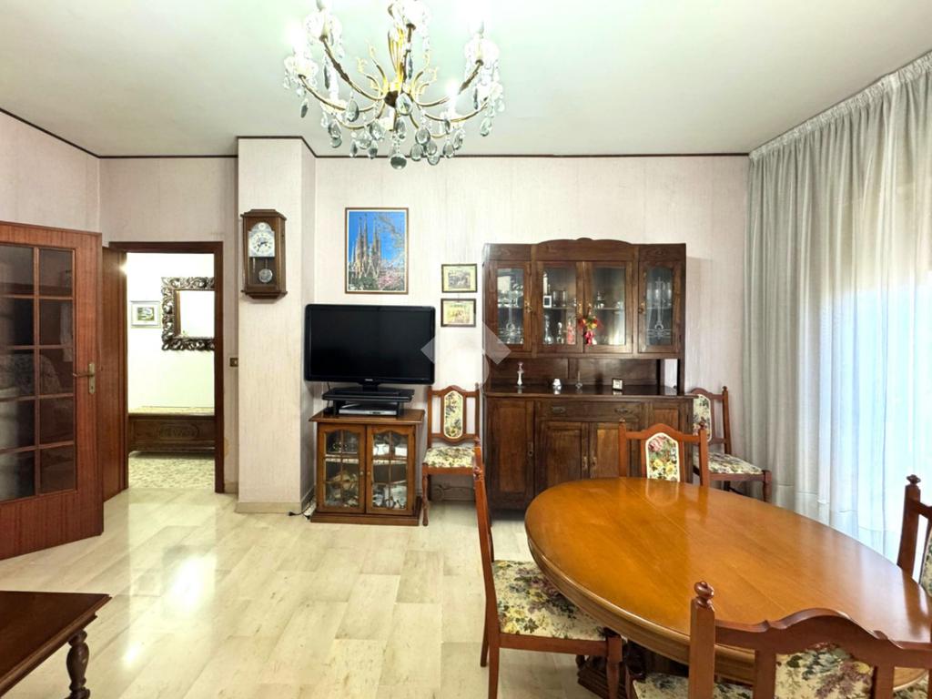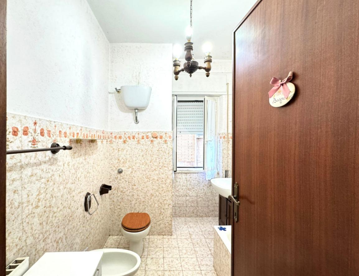 L'appartamento ben distribuito ha due zone principali, la zona giorno composta da: ingresso, soggiorno con uscita sul balcone, cucina abitabile e corridoio. La zona notte invece si compone di camera matrimoniale, due camerette e due bagni finestrati di cui uno con vasca.