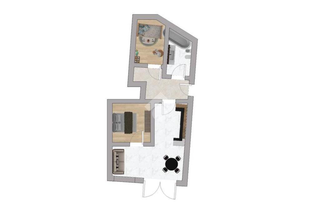 All’interno si sviluppano ambienti accoglienti e ben distribuiti: due camere da letto che offrono spazi intimi e confortevoli, un soggiorno che invita alla convivialità, un angolo cottura funzionale e un bagno con doccia.
