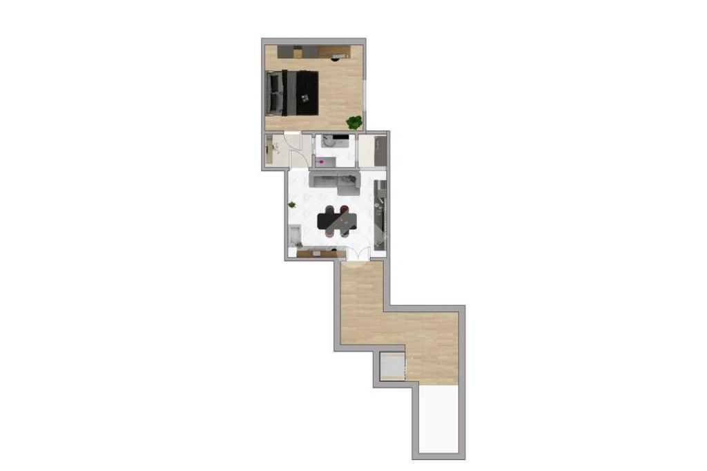 L’appartamento, ideale per single, giovani coppie o come investimento, offre un luminoso soggiorno con angolo cottura e accesso a un pratico balconcino chiuso, perfetto come spazio aggiuntivo. Un comodo disimpegno conduce alla camera matrimoniale e al bagno finestrato con box doccia.