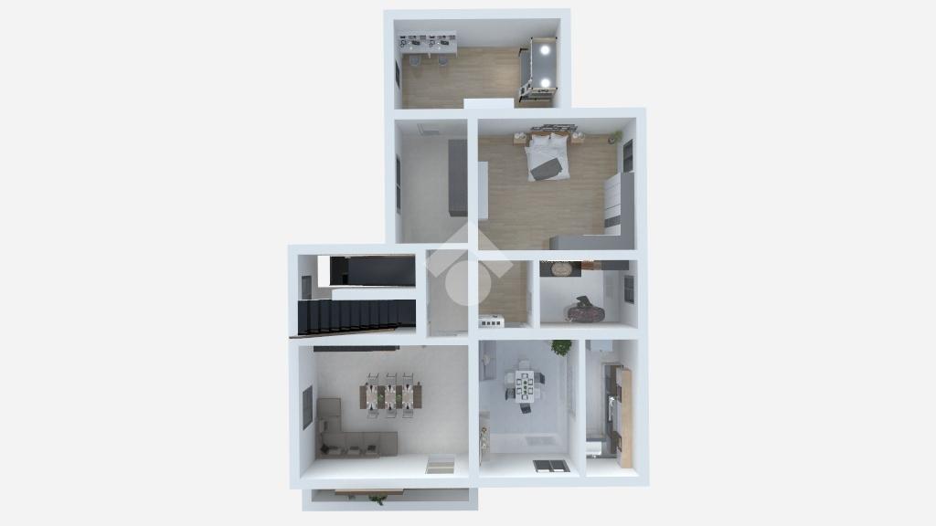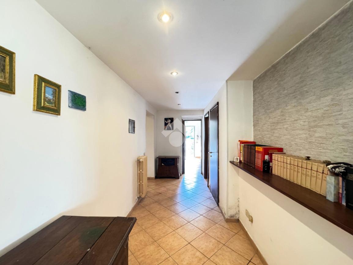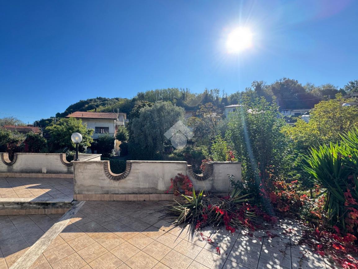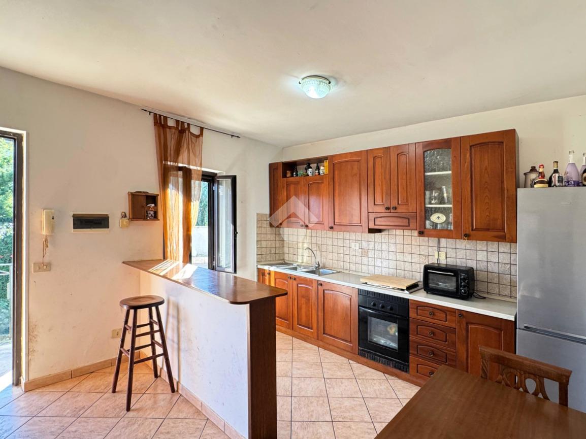 Al secondo piano si sviluppa un appartamento caratterizzato da ingresso indipendente, soggiorno con uscita sul balcone, cucina separata con camino, disimpegno, camera matrimoniale, cameretta, bagno finestrato con vasca, corridoio e scala interna che conduce al terrazzo panoramico.
