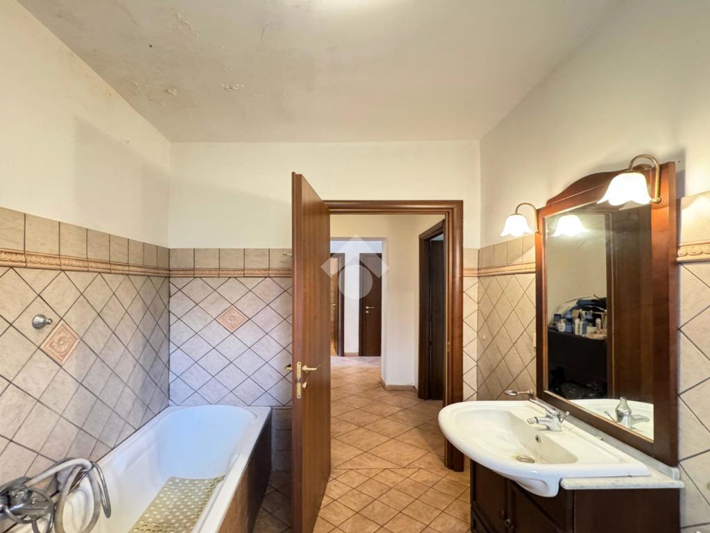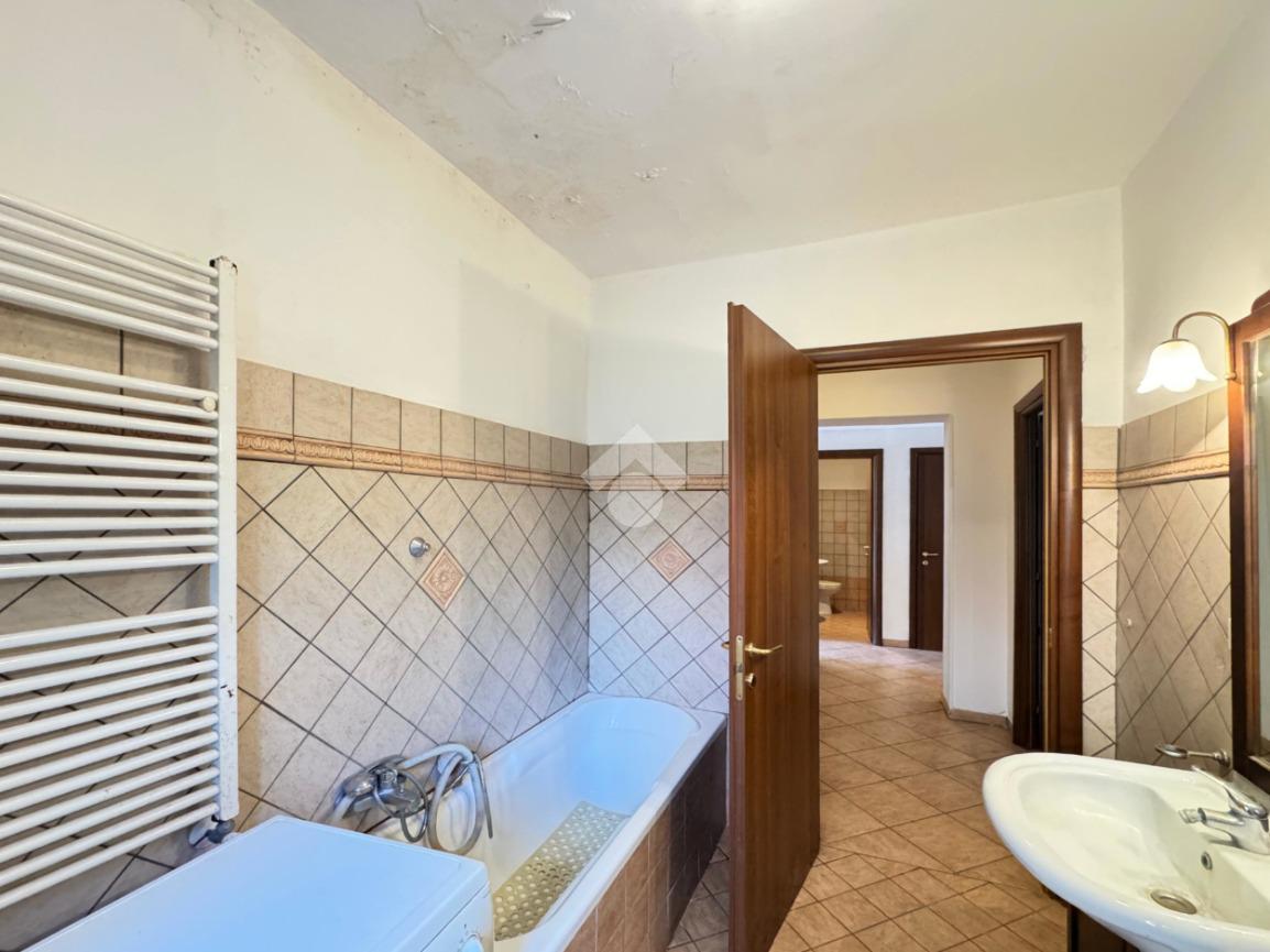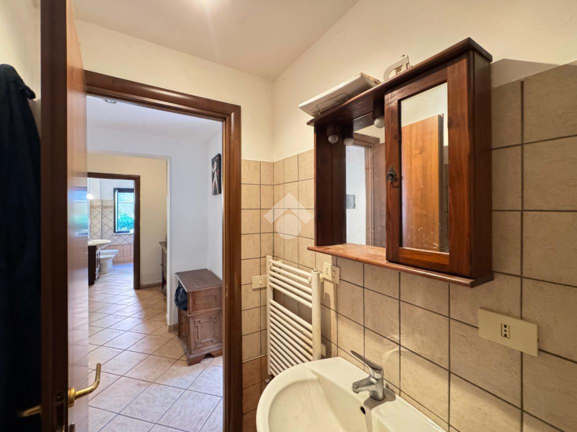 Al primo piano si trova un appartamento accogliente con cucina funzionale, soggiorno ampio e luminoso con porta finestra sul portico, corridoio, due bagni di cui uno cieco e l’altro finestrato con vasca, camera matrimoniale e cameretta.